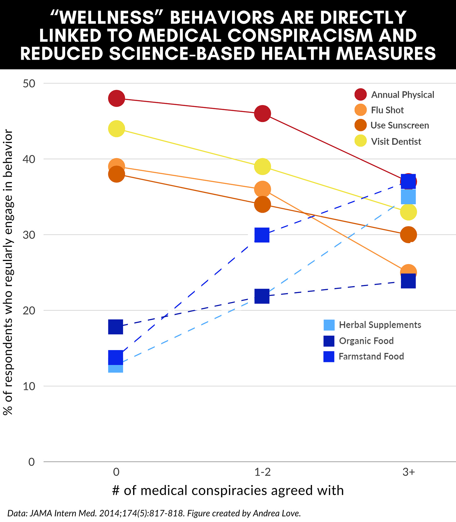 Organic ideology is directly tied to medical conspiracism along with the anti-vaccine movement and wellness pseudoscience. They originate from the same anti-science narrative: fear of “toxins,” distrust of regulators, hostility toward biotechnology, and outsized faith in the “natural” label. People who believe falsehoods about pesticides, GMOs, “chemicals,” or “toxins” also reject vaccinations, seek unproven cancer treatments, and refuse evidence-based health behaviors.
