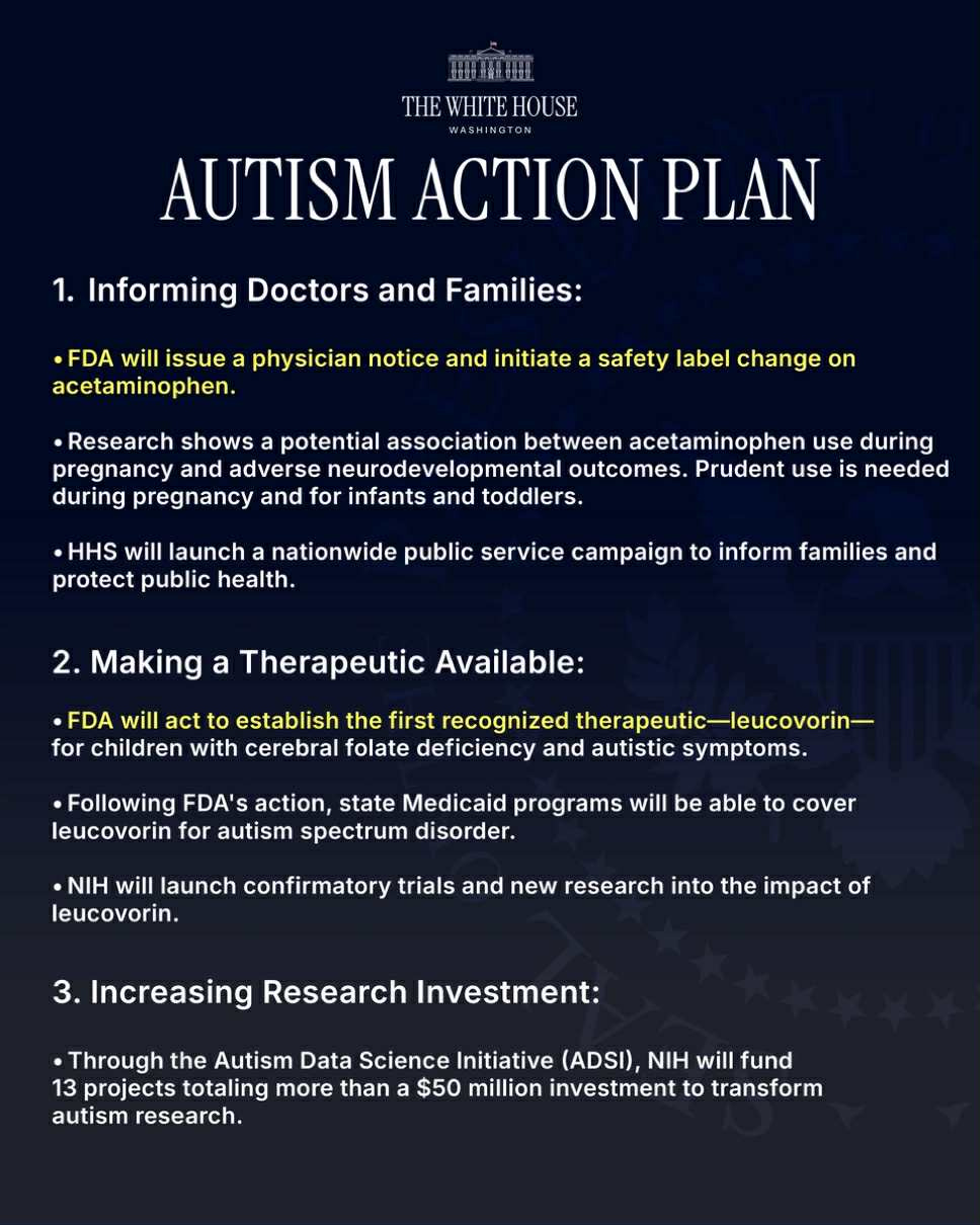 Trump is already spreading deadly medical advice based on this. The White House published their “Autism Action Plan” which includes adding warning labels on acetaminophen.